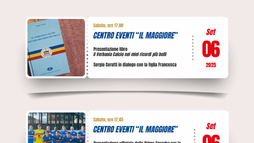 Sabato 6 settembre, a partire dalle ore 17, al Centro Eventi “Il Maggiore” si terrà la presentazione della prima squadra e del libro di Sergio Cerutti dedicato ai colori biancocerchiati